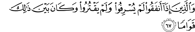 Maksudnya : Dan juga mereka (yang meredhi Allah itu ialah) yang apabila berbelanja , dia tidak melampaui batas dan tidak bakhil. (Sebaliknya) perbelanjaan mereka adalah benar-benar sederhana antara kedua-dua cara (boros dan bakhil) itu.