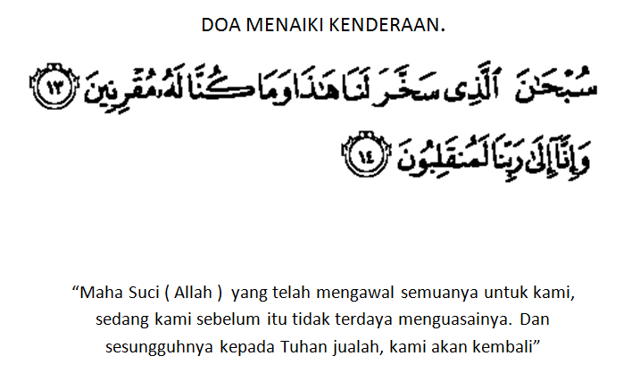 Oleh itu untuk doa menaiki kenderaan ini eloklah baca doa dibawah ini :